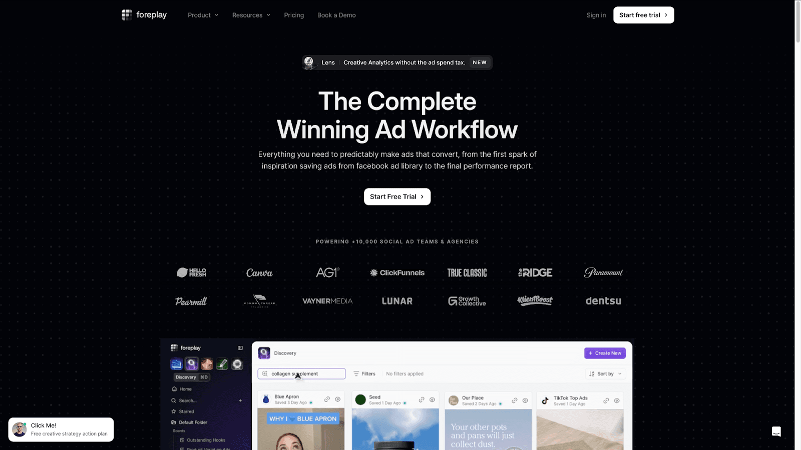 Ad discovery and competitor tracking are two pieces of what Foreplay offers, allowing you to search by keyword, brand or category. Their Spyder makes it easy to track competitor activity and pull insights from the ads those brands produce, with real-time scraping and years of historical data to help you understand what’s winning and why.