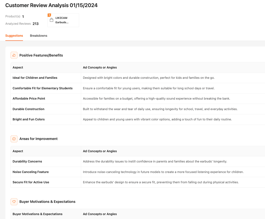 She analyzes customer reviews so you can see exactly what customers fall in love with and what’s blocking their next purchase