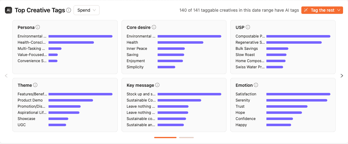 She tags and analyzes your top creatives to surface the hooks, personas, and messages that are actually driving results.